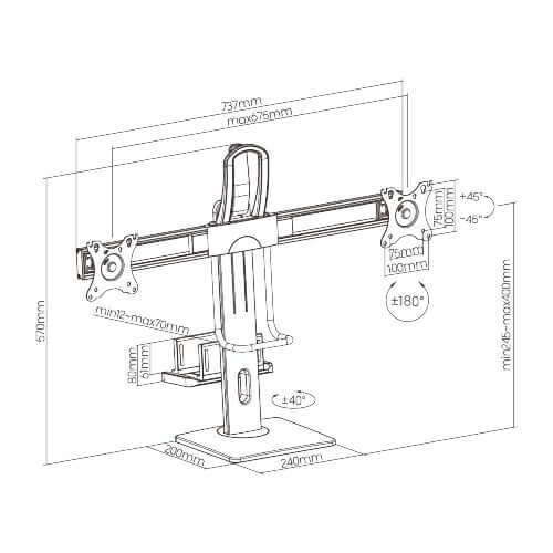 Arm Full Extension: 335mm (13.2")