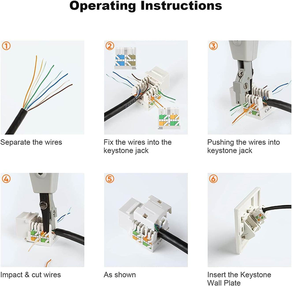 - ✅ UL Listed keystone jacks support T568A and T568B wiring with color coded 110 blocks, refer to the color-coded wiring diagram next to the wire clip; It Supports 110 or Krone dual type termination and accepts 23 or 24 AWG solid Ethernet cable.