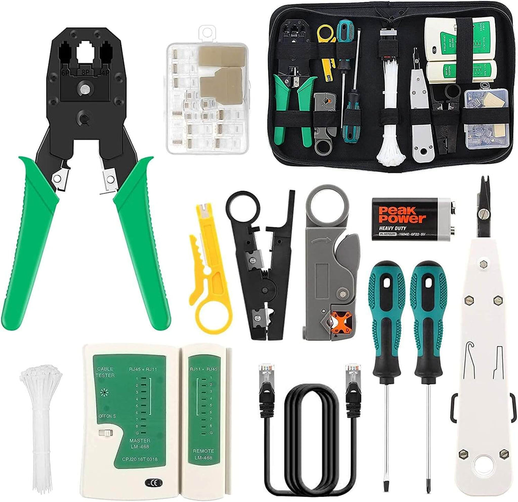 - đ§ăComplete Kită18 in 1 tool set, including a network cable gland, a network cable tester, a network cable stripper, a cable cutter, a flat and Phillips screwdriver, a network cable stripper, a drilling tool and heads, connectors, etc. RJ45 (8P8C) / RJ12 (6P4C). They can help you make an effective repair.