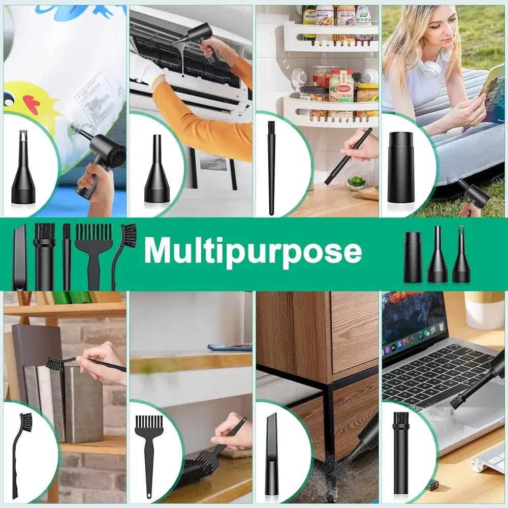 - 【Economical & Energy Efficient】: Compared with compressed air can, our cordless air duster do not produce chemicals, liquids or ice during the cleaning process. It protects your electronics from liquids. The air blower be used multiple times, it saves you money and protects the environment.