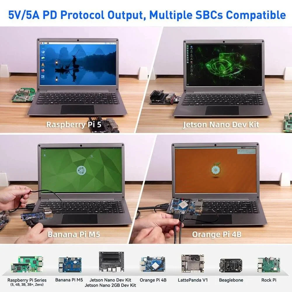 - 5V/5A PD Power Delivery ensures a stable power supply for any SBC operating at 5V.
