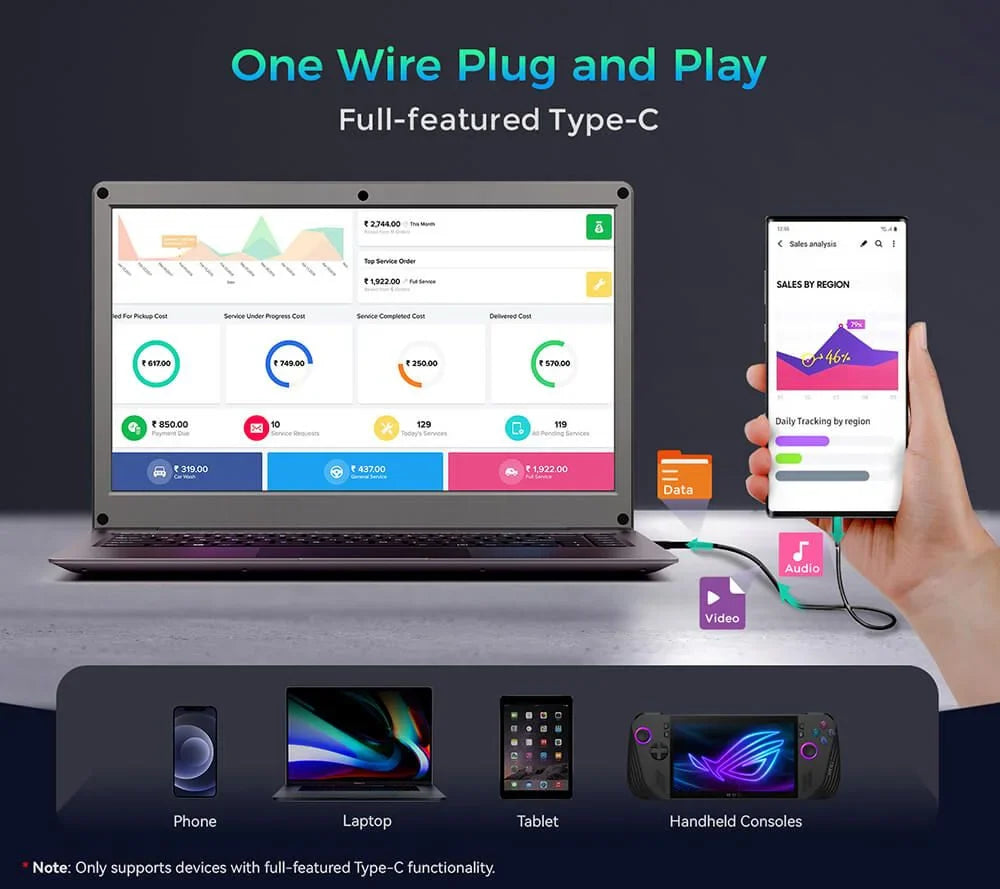 - Full-featured Type-C port can enjoy efficient data and audio/video transfer across devices, ensuring compatibility with PCs, smartphones, and more.