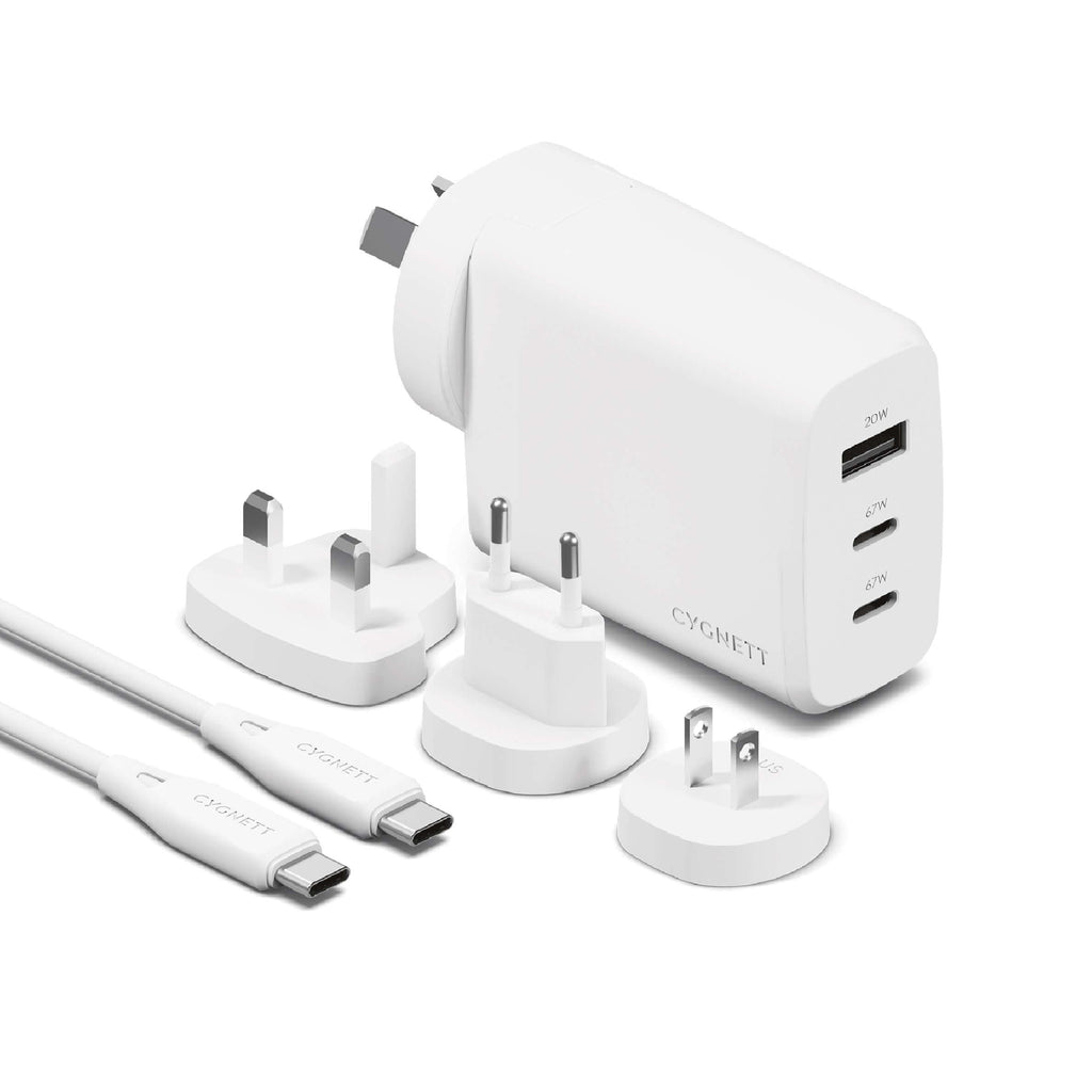 Cygnett PowerMaxx 67W Multi-Port GaN Travel Wall Charger - White (CY4771PDWCH)