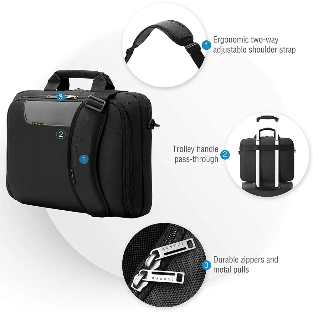 Make the Advance laptop briefcase your everyday bag. Its slim profile, contemporary design, and lightweight construction make the bag an effortless carry. The spacious, well-padded, top-loading compartment allows quick and easy access to laptops up to 16". An included removable non-slip shoulder strap comfortably distributes weight by intuitively contouring to your shoulder; fine adjustments to the strap length can be made manually. The Advance's separate zippered accessory compartment stays organized with a generous assortment of multifunction pockets while a quick-access front stash slot keeps important items close at hand.
