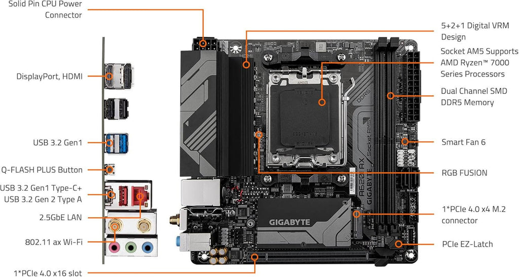 - AMD AM5 Socket: Supports AMD Ryzen 7000 Series Processors