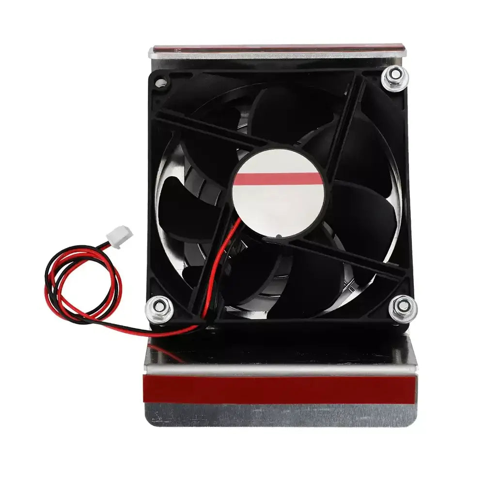 - Assemble the Kit: Fit the fan and finger guard to the aluminum bracket using the supplied hardware, ensuring the non-stickered side of the fan faces forward and the wiring is positioned for easy connection.