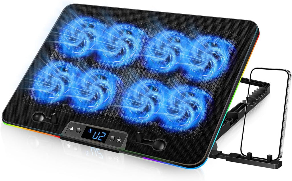 - 【High efficiency】The Laptop cooling pad consists of eight fans that provide rapid cooling from precise angles. ensuring smooth gaming and office work without overheating.The maximum fan gear is 30 dB,reduce working noise, very quiet and creates a noise-free environment for you.