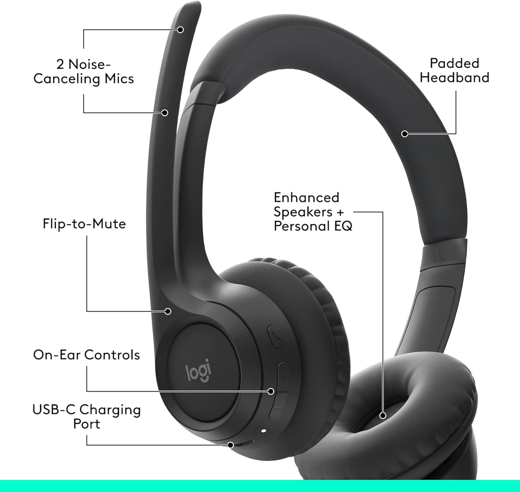 - Headset With Noise-Canceling Mic: Dual beamforming mics on the extended boom with noise-canceling algorithms suppress background noise in homes and shared workspaces for clear conversations