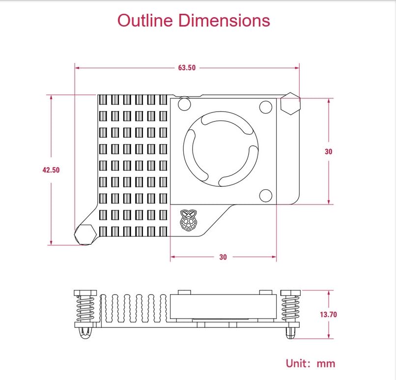 - How to Install: Connect the 4pin cable to the fan header on Raspberry Pi 5, and fix the Active Cooler via spring-loaded push pins
