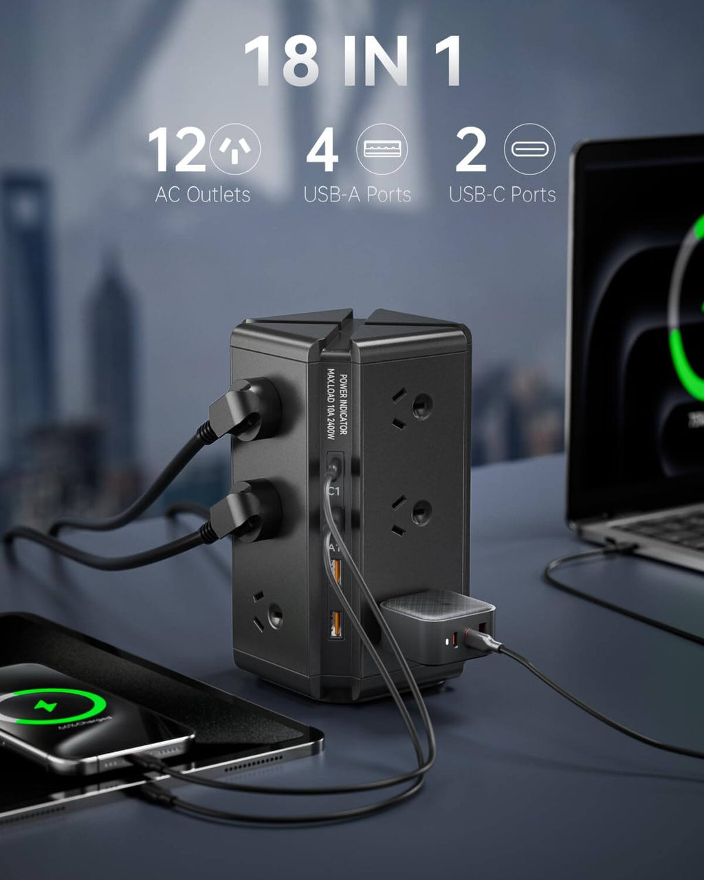 - [Compact and Vertical Design for Large Adapters] In terms of design, our Tower Power Board Tower Power Board features a compact and vertical size that can accommodate large adapters, measuring approximately 18cm x 10cm x 10cm, saving valuable desk space. The vertical design of the Tower Power Board Tower Powerboard USB also takes up less horizontal space, providing a larger desk area for more productive work. The compact Tower Power Strip Tower Powerboard USB can be easily integrated into any workspace, making the Tower Power Strip Tower Powerboard USB a convenient tool for users who are always on-the-go.