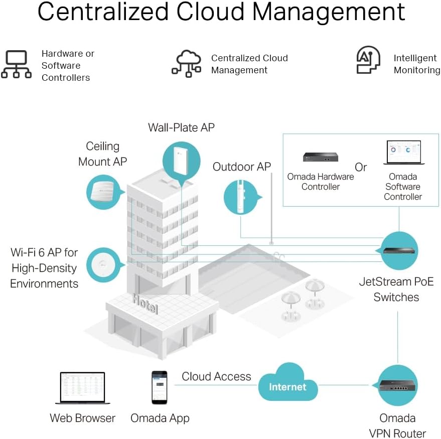 - Centralised Management: Cloud access and Omada app for ultra convenience and easy management.