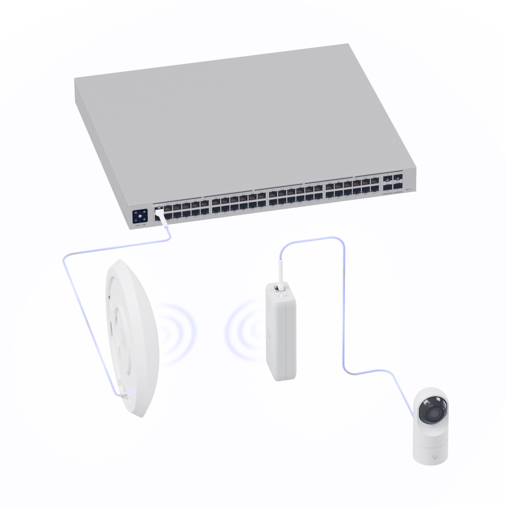 Plug-and-play, wireless bridging PoE adapter with integrated UniFi WiFi Auto-Link.