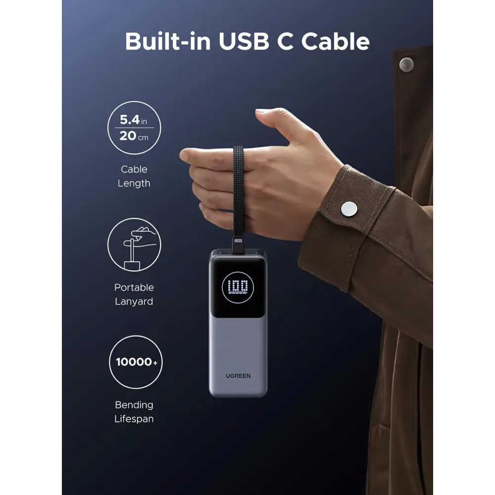 - Built-in Cable & Portable Column Design: Revolutionise on-the-go charging with the built-in USB-C cable that eliminates tangled wires, tested for 10000+ bend cycles. 131*54*51mm compact, column design fits effortlessly in car cup holders and backpack pockets