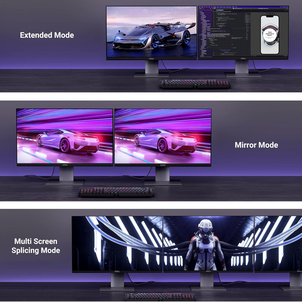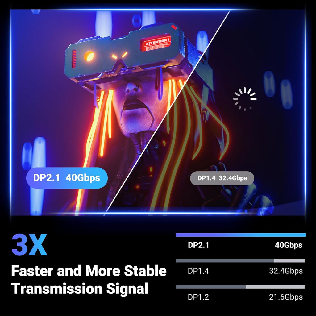 - 【Optimized for Game Enthusiasts】The DP cable 2.1 is highly recommended for game setups as it works well with game monitors and graphics cards, delivering high-quality video and audio signals with no lag or interference. It supports FreeSync and G-Sync, which are essential for gaming. You can easily connect multiple monitors with Multi-Stream Transport (MST). Variable refresh rate (VRR) and auto low latency mode (ALLM) bring you smoother game experience especially in FPS, 3A and MOBA games.